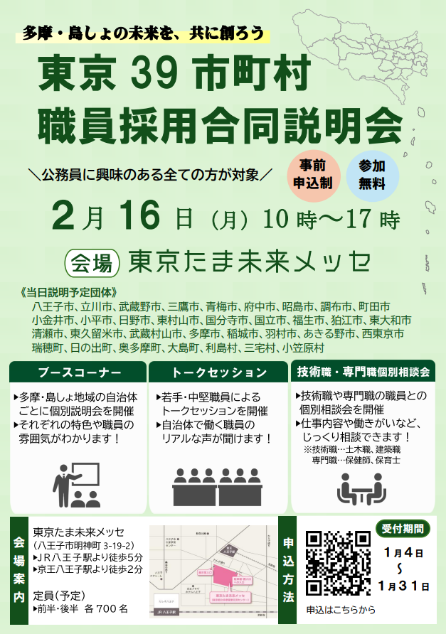 都内39市町村で職員採用合同説明会を開催します。