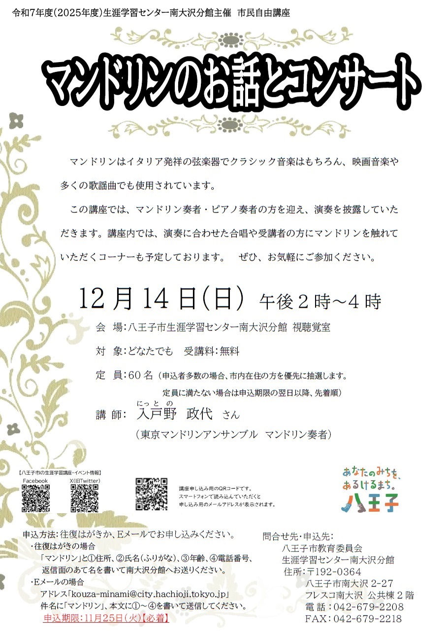 メールアドレス:kouza-minami@city.hachioji.tokyo.jp