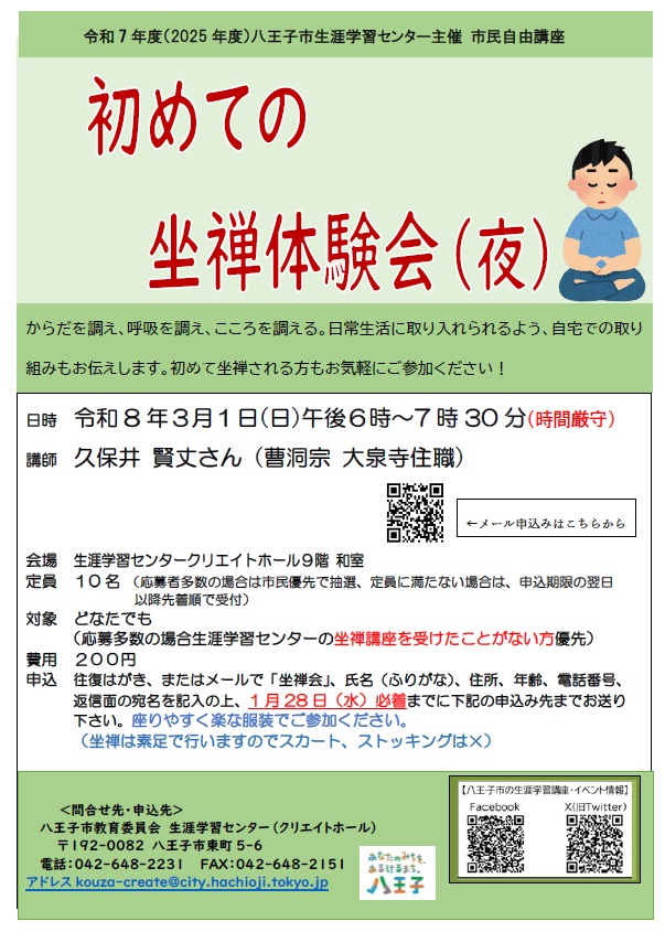 令和7年度市民自由講座「初めての坐禅体験会(夜)」(画像形式(JPG) 195キロバイト)