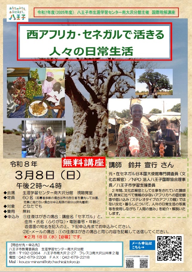 - トップ > イベント情報 > 講座・教室 > 国際理解講座「西アフリカ・セネガルで活きる人々の日常生活」