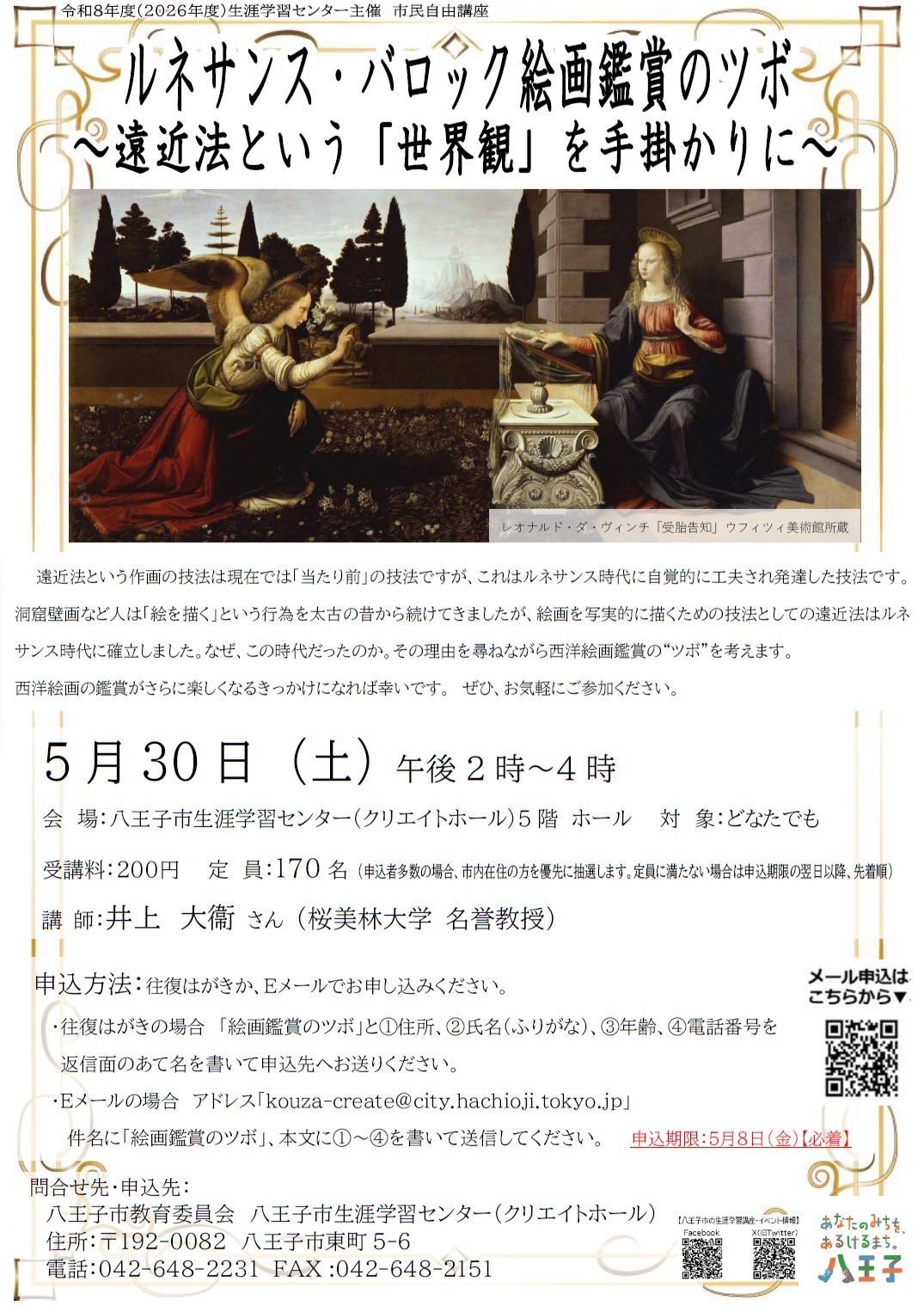 - トップ > イベント情報 > 講座・教室 > 市民自由講座「ルネサンス・バロック絵画鑑賞のツボ~遠近法という「世界観」を手掛かりに~」