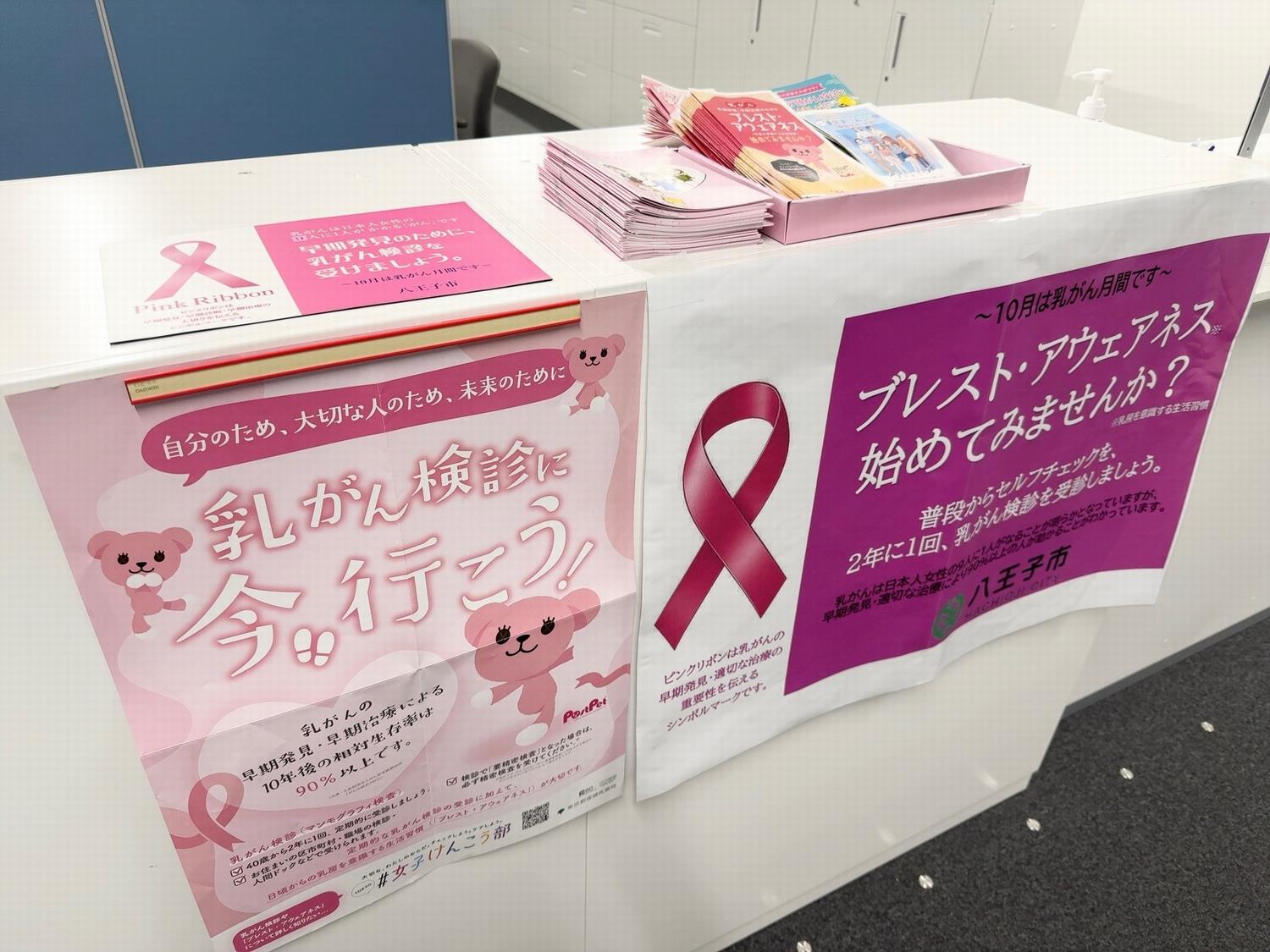 市役所・保健所・保健福祉センターで乳がん検診のポスター掲示、リーフレット配布