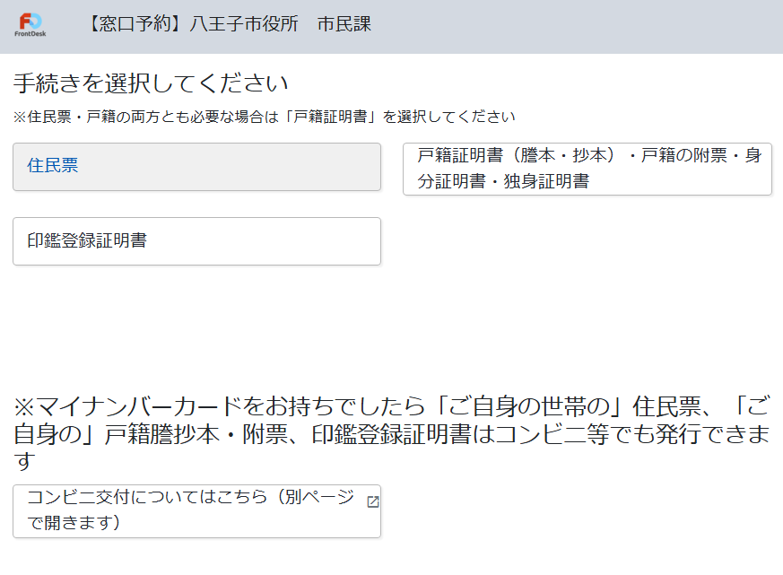 本庁市民課・八王子駅南口総合事務所の手続き予約について