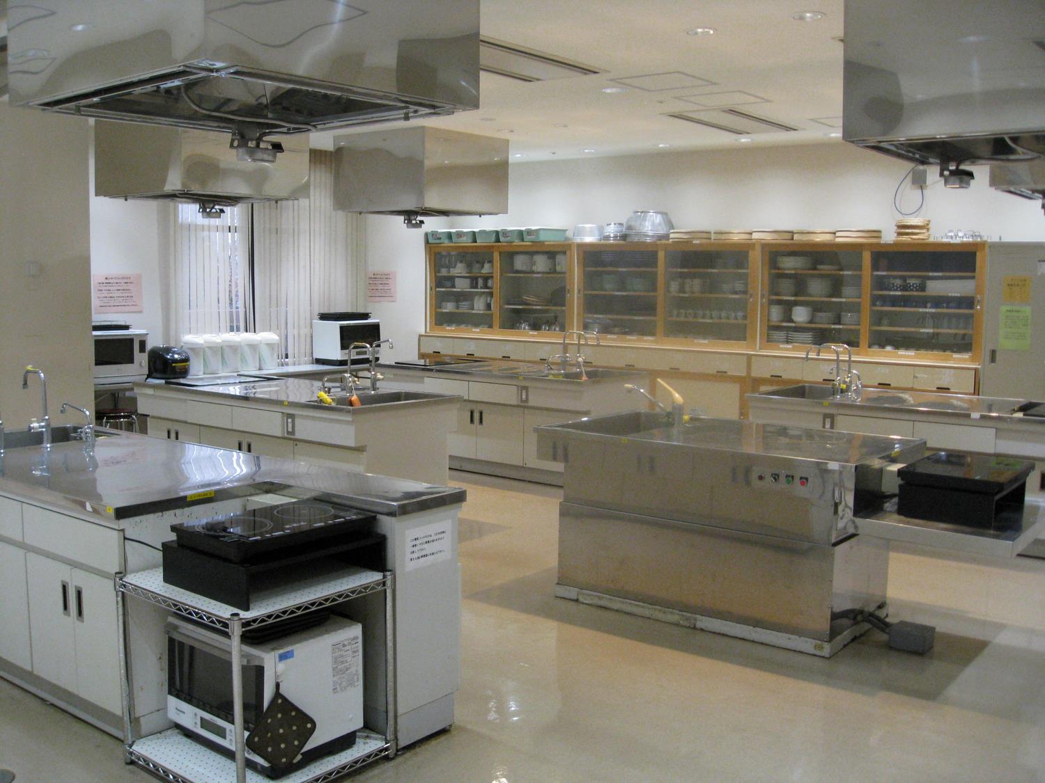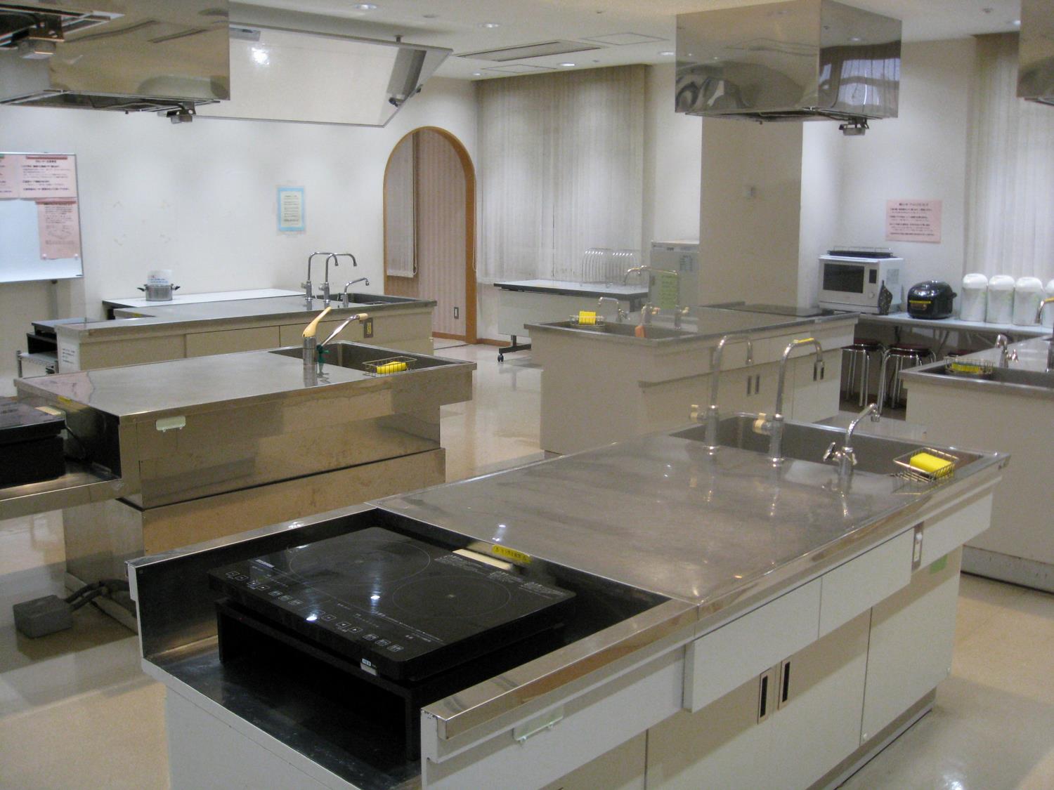 料理講習室 面積100平方メートル 定員24名 (試食室併設 面積28平方メートル)