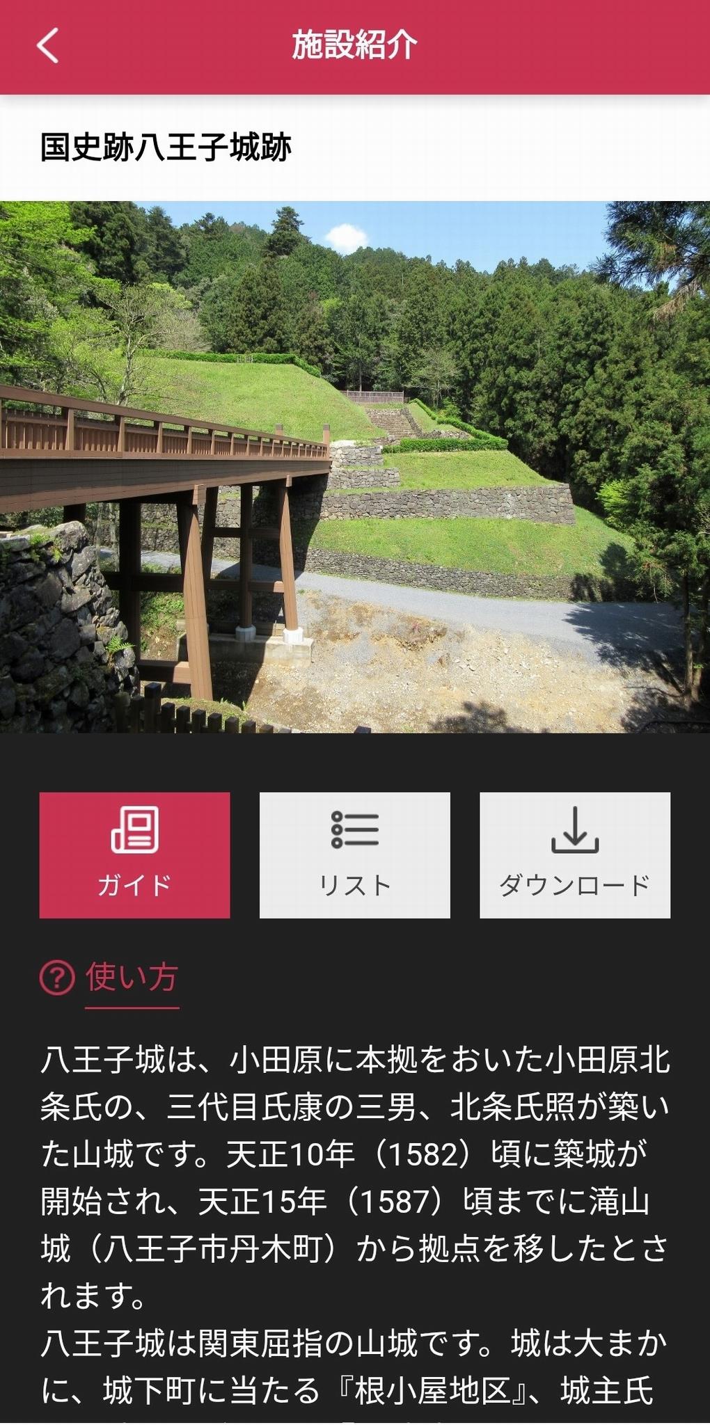 (補足)八王子城跡にカーナビゲーションを利用してお越しになる際は、八王子城跡の入口となる「八王子城跡ガイダンス施設」の住所(東京都八王子市元八王子町3-2664-2)を入力してください。