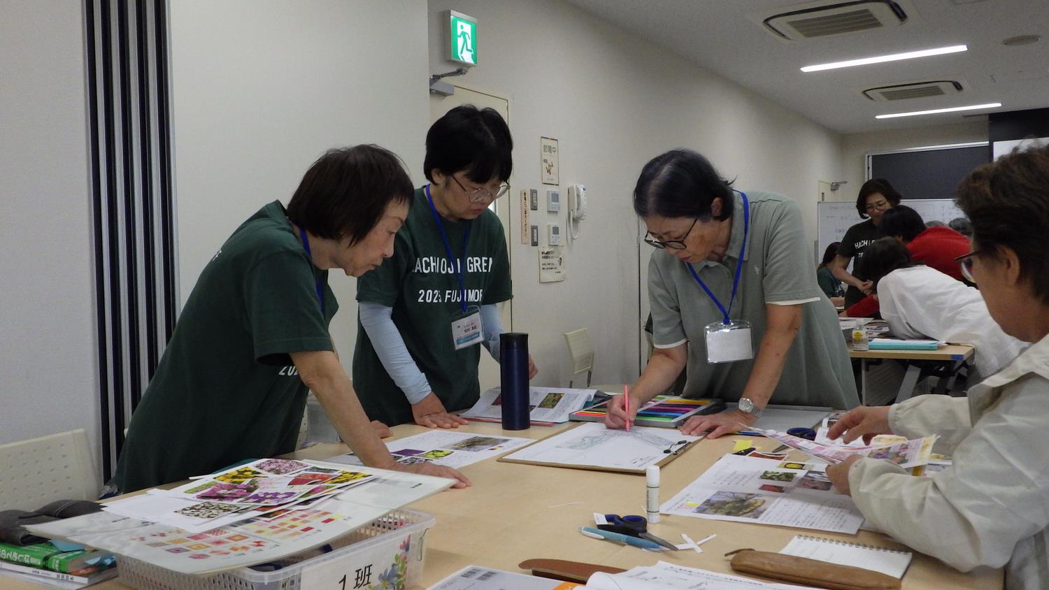 花壇デザインのワークショップを行いました。 色紙や花の写真を使って配色を考え、作りたい花壇のイメージを固めていきます。 |