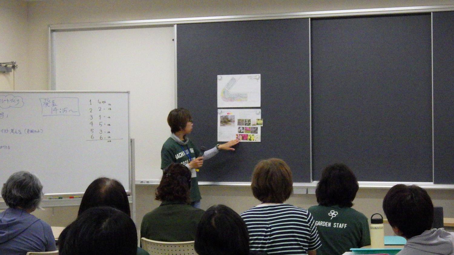 コミュニティガーデンの考え方や役割、ボランティア活動をする上で必要な知識についての講義がありました。 |
