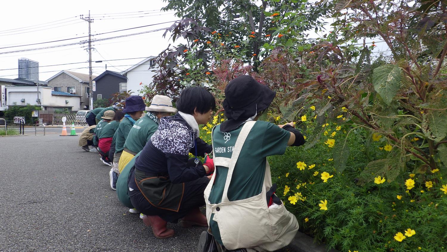 講師の指導により、花がら摘み等花壇のメンテナンス作業を行いました。 |