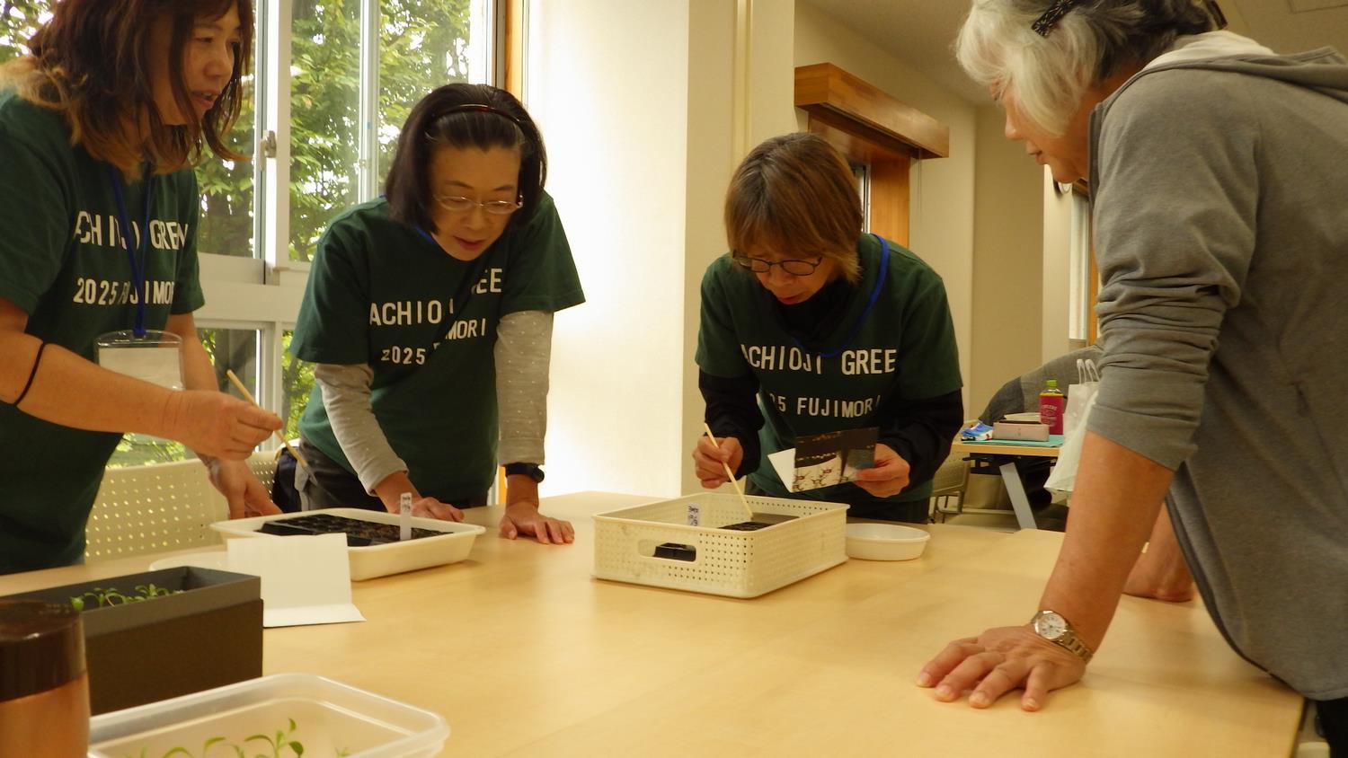 同じく前回の講義で仕分けた種を使用して、種まき作業も行いました。 |
