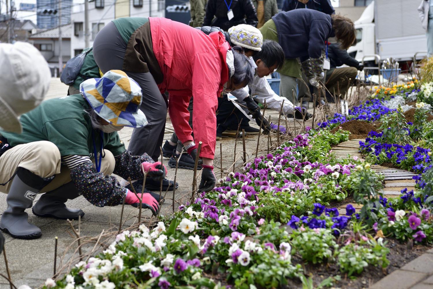植え付けの終わった花壇の様子です。 |