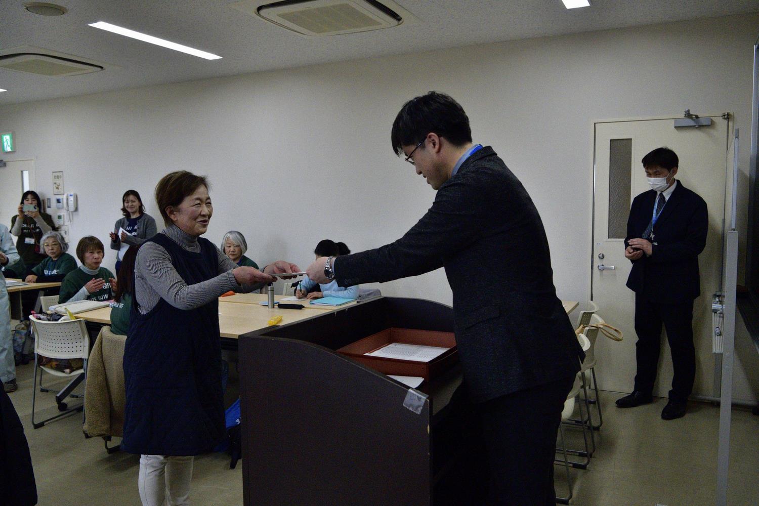 午後はこれまでの講座を振り返った後、修了式を行いました。 第八期生の皆様、おめでとうございます。 |