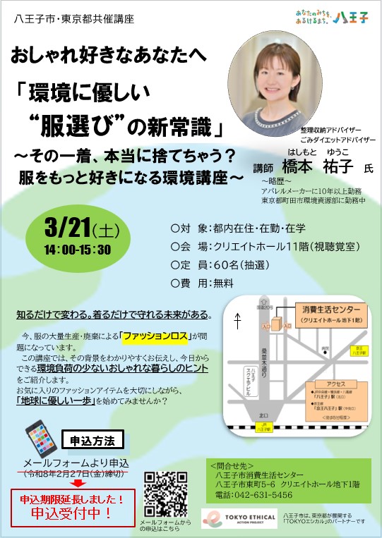 【開催終了】東京都共催講座 「環境に優しい”服選び”の新常識 」 の開催について