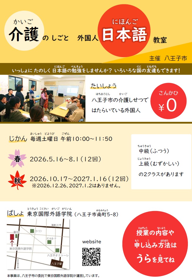 「介護のしごと 外国人日本語教室」開催のお知らせ