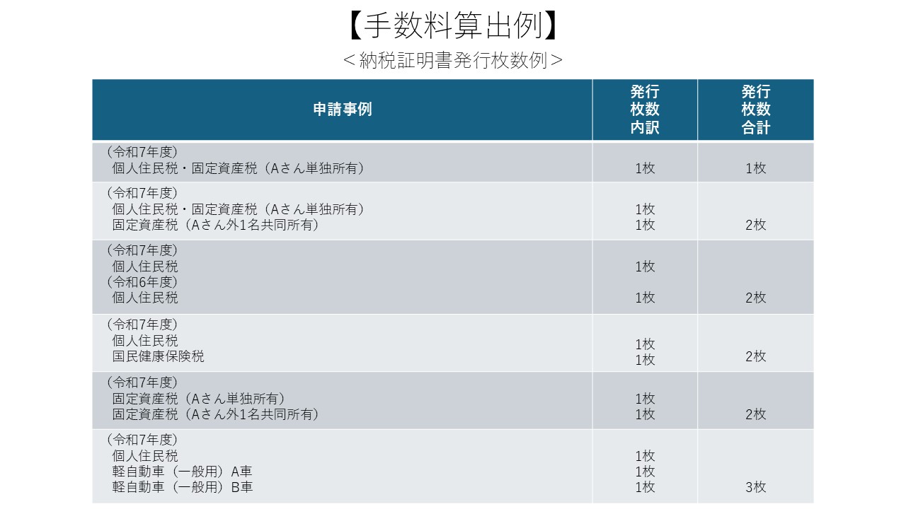 納税証明書(個人住民税、固定資産税・都市計画税、国民健康保険税、法人住民税、事業所税)