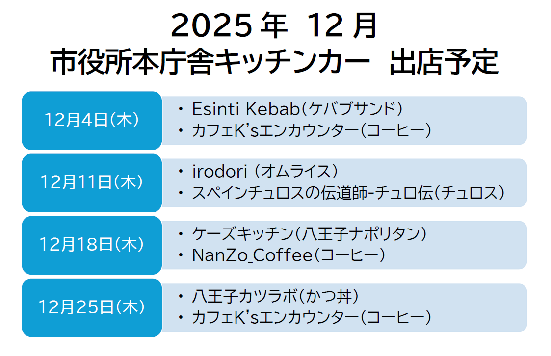 試行期間中のキッチンカーの派遣については、八王子市キッチンカー事業者連絡協議会にご協力いただいています。