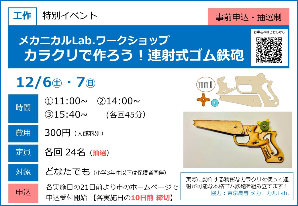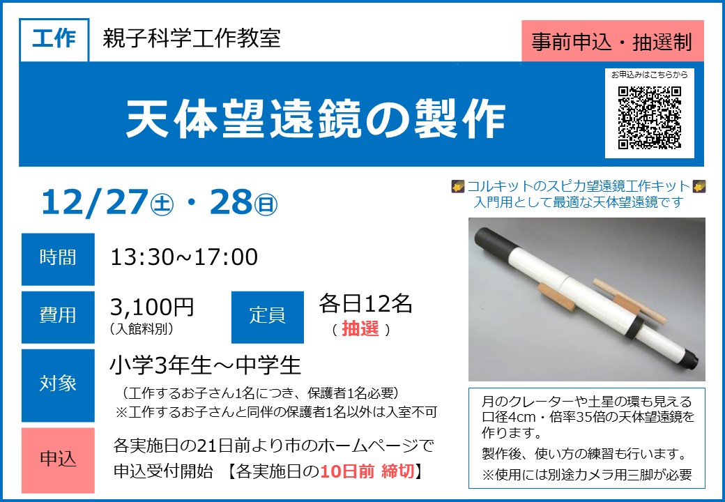 - トップ > 施設案内 > 文化施設・ホールなど > 科学工作等イベント