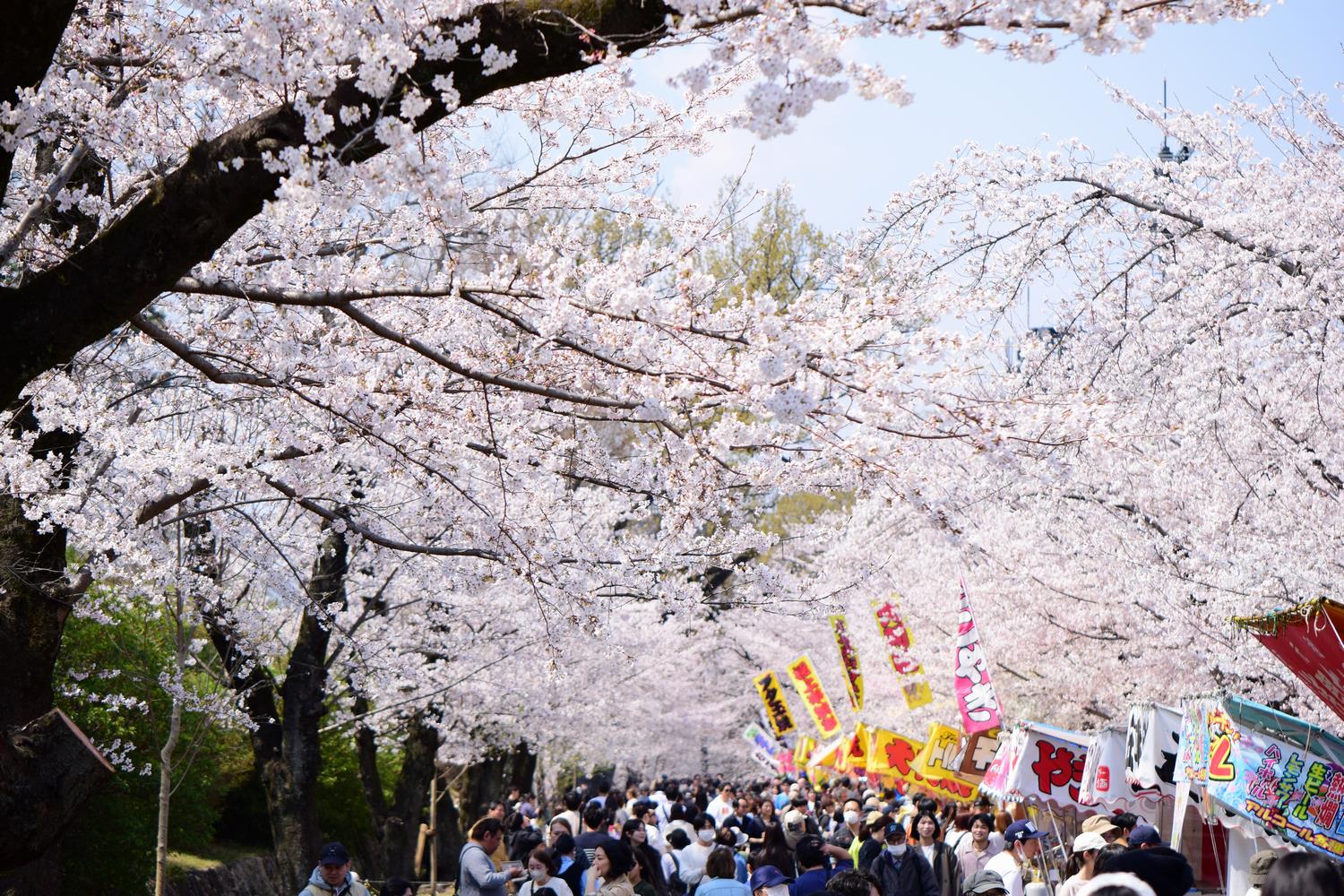 汗ばむほどの陽気に恵まれた日曜日、富士森公園では約200本の桜がちょうど満開を迎えていました。見上げれば一面の薄紅色が広がり、並んだ屋台からは食欲をそそる香りが漂っています。大勢の家族連れなどの賑やかな声が響く園内は、春らしい活気でいっぱい。心地よいお花見日和に、訪れた誰もが自然と笑顔になるような、穏やかで楽しい一日となりました。